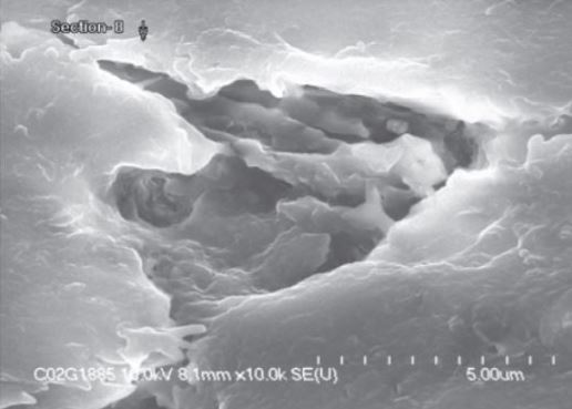 Water is the only substance that moves quickly through the nail plate and it moves much faster through the nail plate than it does through the skin. Oily substances move more slowly through the nail plate than water. Migration of substances through the nail plate occurs only for substances with a chemical structure that mimics the natural oils in the nail plate. Oil concentrations in the plate can increase with each additional topical application. The oil concentration in the nail plate can more than double from a low 3% to 6% or maybe even 7%, with repeated applications. Repeated applications will allow the nail plate to maintain higher levels of oil in the nail plate. One reason is, there are pathways between the nail cells that allow for the passage of oil or water, see the Image below.
