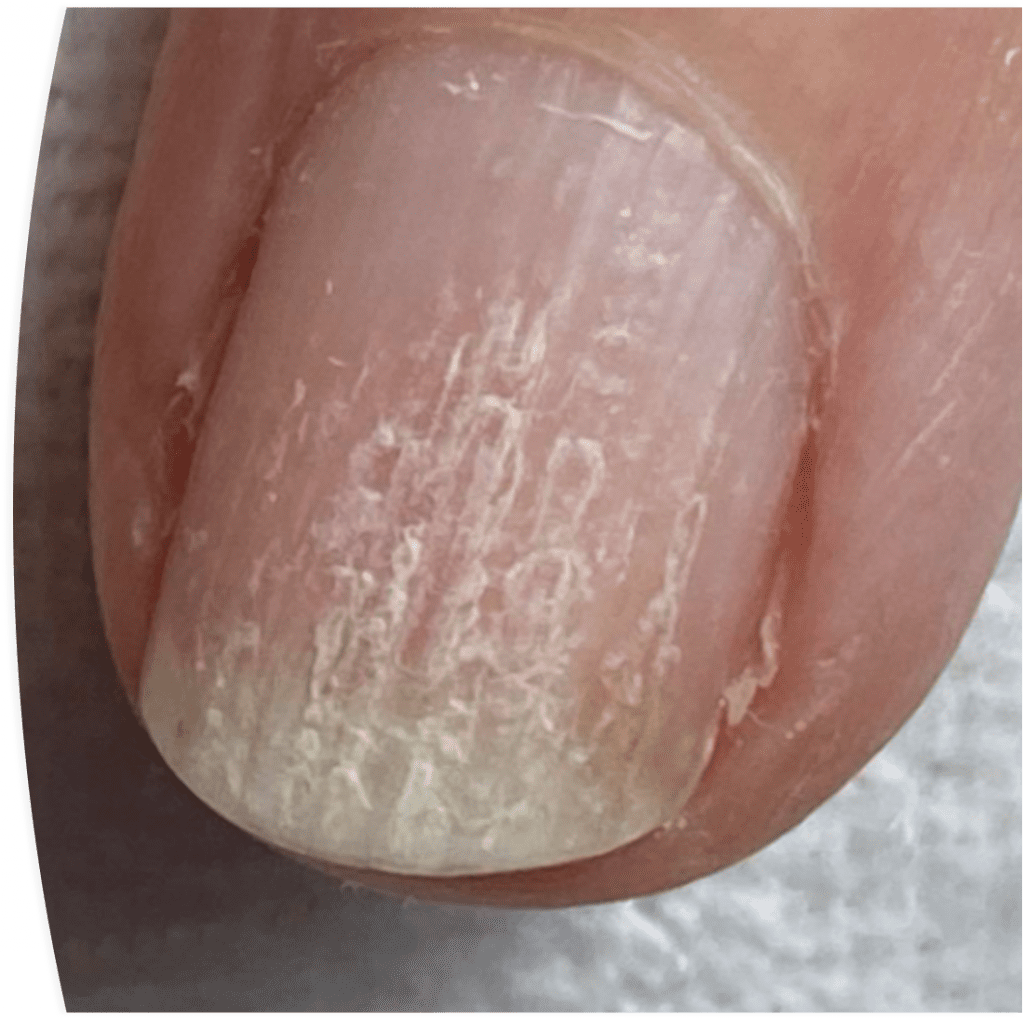 The other problem that we might see is that white superficial onychomycosis has developed.