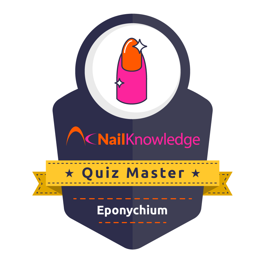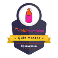 Esta insignia significa experiencia en el conocimiento de Eponychium. Se obtiene al aprobar los cuestionarios Básico, Profesional y Avanzado de Eponychium y representa un compromiso con la comprensión integral del cuidado de las uñas.