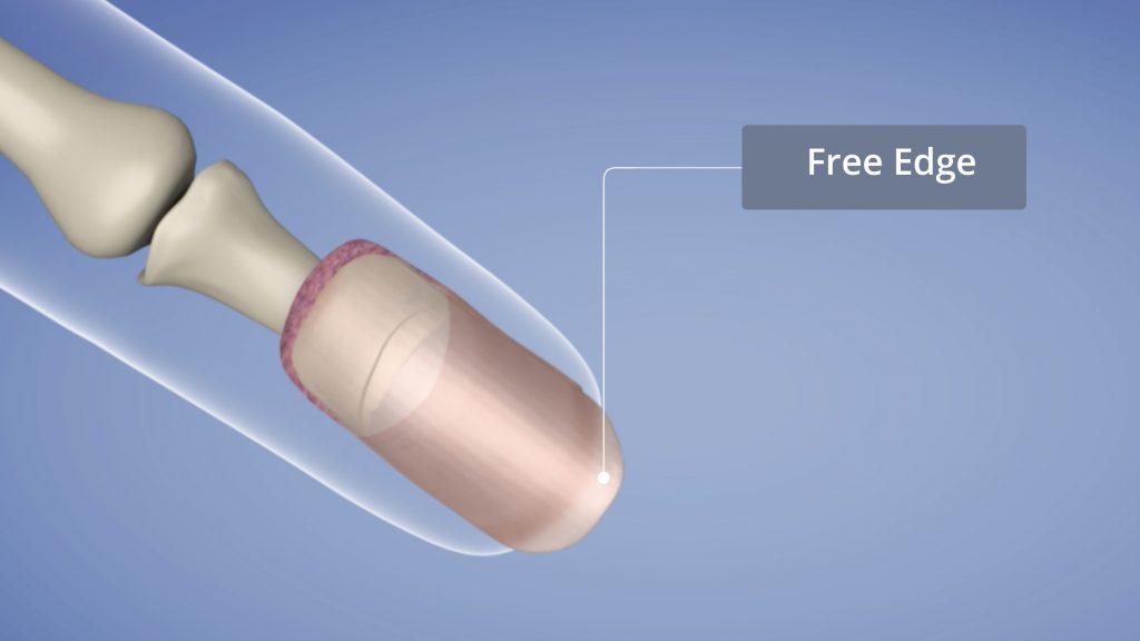 A borda livre refere-se à parte mais externa da lâmina ungueal que se estende além da ponta do dedo da mão ou do pé. É a parte da unha que não está presa ao leito ungueal ou à pele ao redor. A borda livre é normalmente aparada e modelada durante as rotinas de cuidados com as unhas e é suscetível a se quebrar ou romper quando submetida a força excessiva ou trauma.