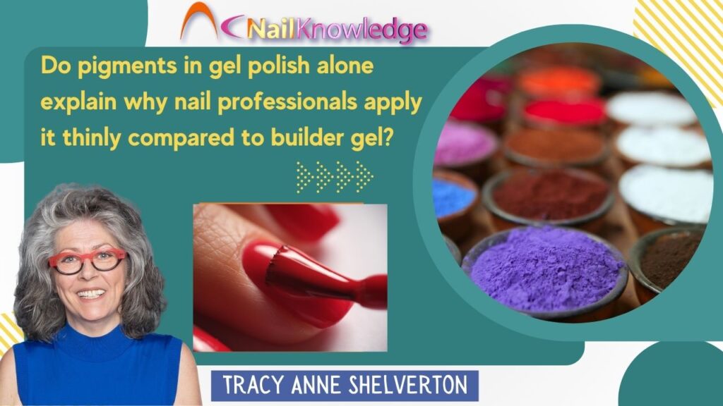 Do pigments in gel polish alone explain why nail professionals apply it thinly compared to builder gel?