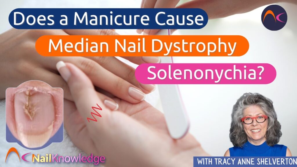 Does a manicure cause median nail dystrophy (solenonychia)?
