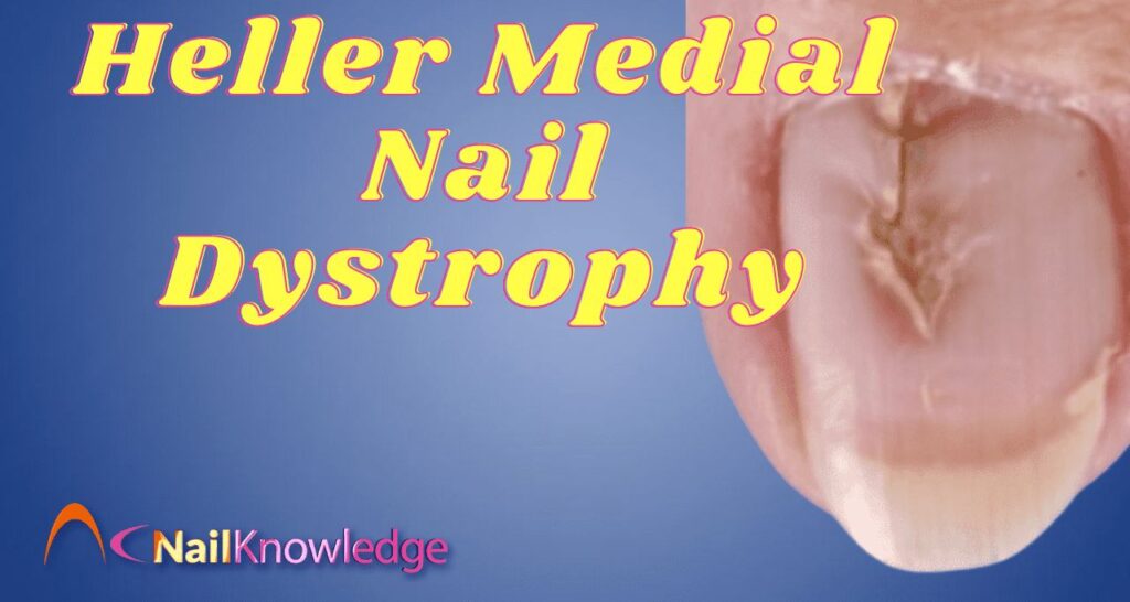 Nói một cách đơn giản: Bệnh loạn dưỡng móng giữa Heller là vết rách ở phiến móng, đầu tiên có thể nhìn thấy ở phần gần nếp gấp móng tay theo thời gian trông giống như một cây thông Noel lộn ngược bắt đầu khuất khỏi tầm nhìn, có thể là do đơn vị đóng đinh chấn thương hoặc nhiễm trùng.