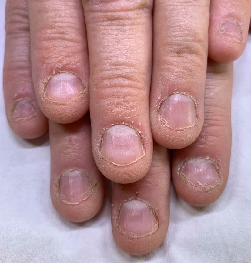 Cắn móng tay Onychophagia. This is a nervous condition where individuals bite their nails, sometimes down onto the nail bed.