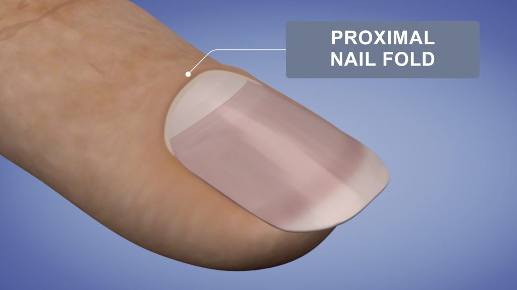Seal above the nail matrix at the proximal edge of the nail unit.